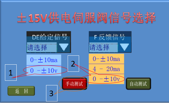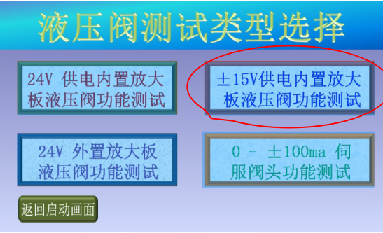 3、確認(rèn)現(xiàn)場人員和設(shè)備安全后,點(diǎn)擊“進(jìn)入測試”,進(jìn)入液壓閥測試類型選擇畫面;