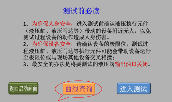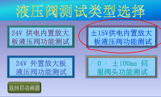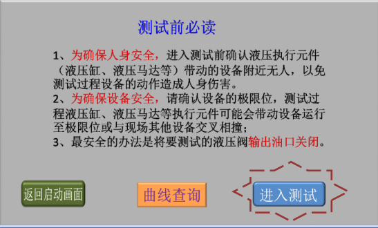 3、確認現場人員和設備安全后,點擊“進入測試”,進入液壓閥測試類型選擇畫面;